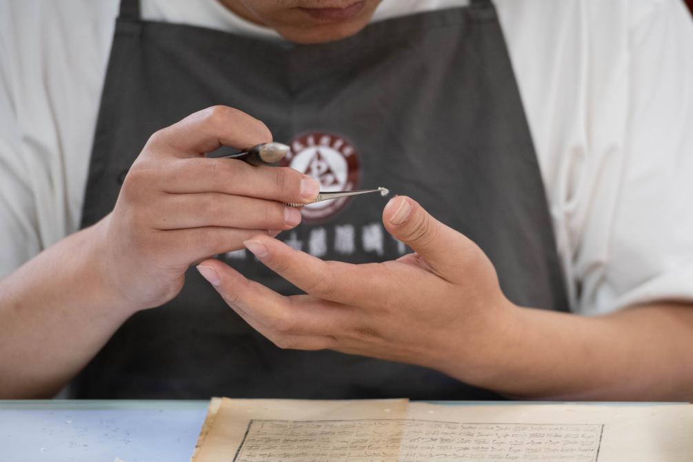 古籍修复是技术活,更是磨炼心性的过程。入职头几年还坐不住的金鑫,现在心能定下来,修复技艺也渐渐熟练。谈及未来的小目标,他的回答很简单:“争取修好每一本书。”