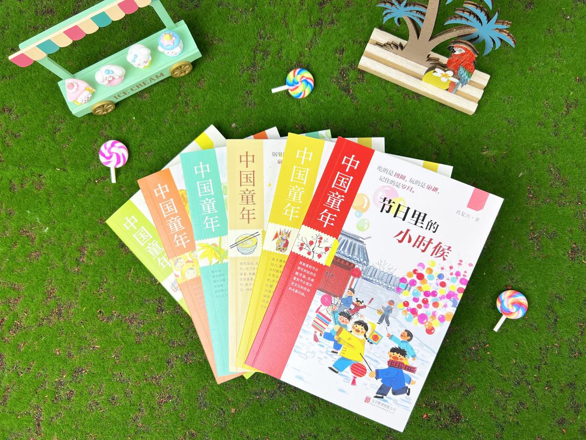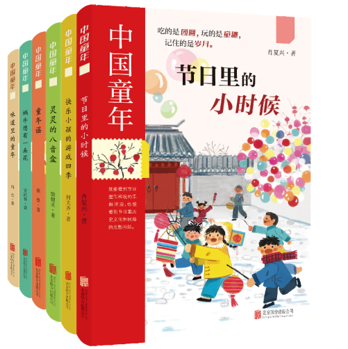 “中国童年”原创书系由北京联合出版公司出版,共六册:《节日里的小时候》《灵灵的八音盒》《快乐小孩的游戏四季》《味道里的童年》《童年谣》《蜗牛想有一朵花》。六位知名儿童文学作家通过节日、老物件、游戏、美食、童谣、童诗六个视角,勾勒出富有中国文化底蕴与生活温度的童年图景。